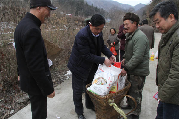 3. 2018年2月7日(周三),公司購買價值12000元的米、面、肉、油,對麻廟村47戶貧困戶進(jìn)行了春節(jié)慰問,參加慰問的有公司副總譚照明、代均康,漢濱區(qū)治安大隊隊長趙治宏、漢濱區(qū)工商聯(lián)副主席陶霞,公司行政部副經(jīng)理唐劍、司機(jī)班副班長彭福、蠶桑發(fā)展部蘇鳳剛、董百順。