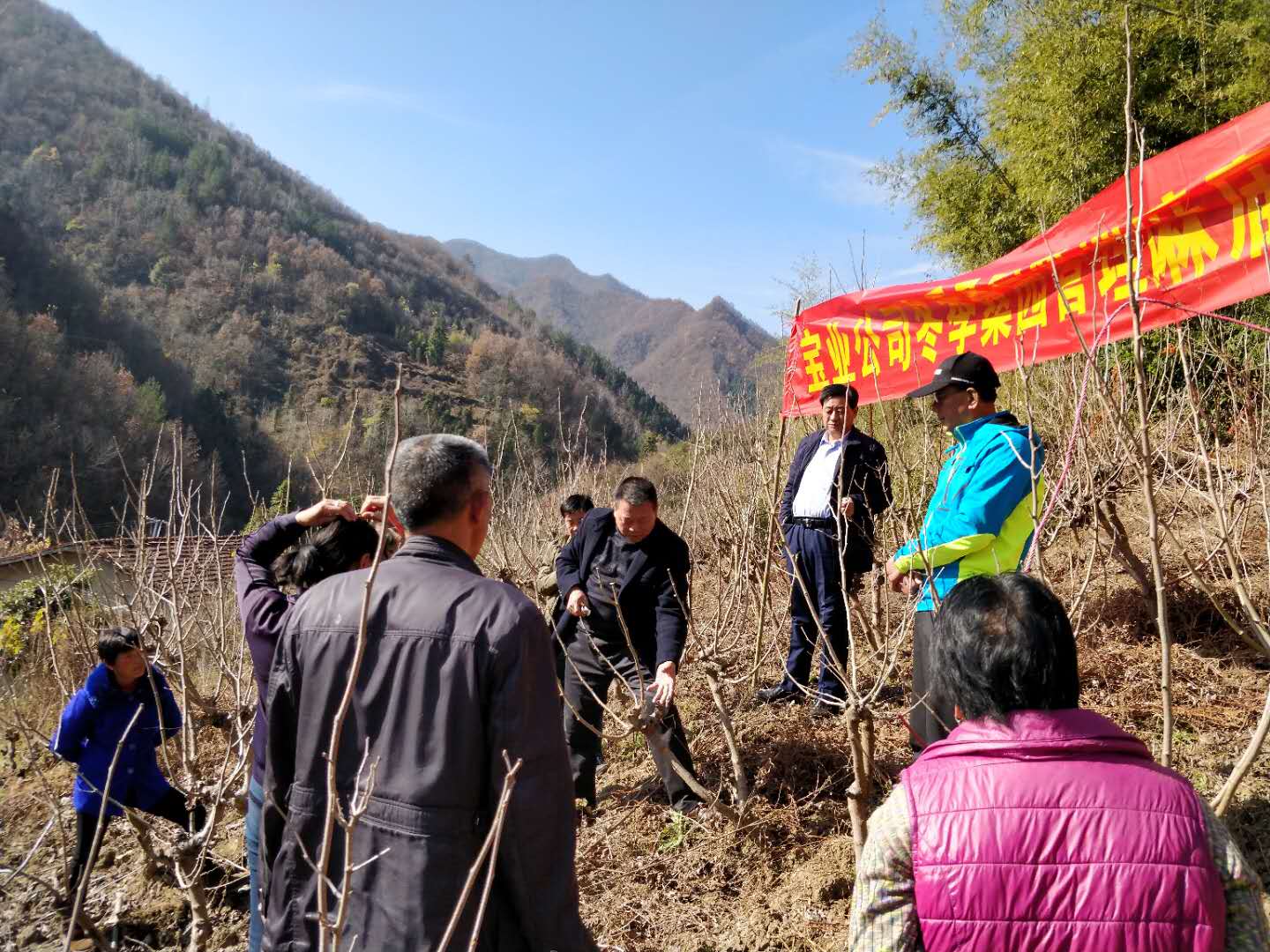 14. 2018年11月26日(周一),陳正余、譚照明、代均康、蘇鳳剛、馬釗、彭福等,到麻廟村進(jìn)行新栽桑樹樹型養(yǎng)成和冬季桑園管理技術(shù)培訓(xùn),麻廟村“兩委”班子成員、合作社養(yǎng)蠶大戶共23人參加了培訓(xùn)。陳正余現(xiàn)場手把手的給大家示范講解,使參培人員基本掌握了相關(guān)的技術(shù)要求。同時,公司給村上送去了價值5200余元的2000kg生石灰、100kg鹽、50把桑剪。